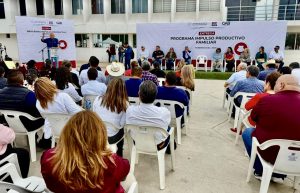 Como parte de la política social de la Cuarta Transformación, el gobernador Víctor Manuel Castro Cosío, junto con la presidenta del Sistema Estatal para el Desarrollo Integral de la Familia (SEDIF), Patricia López Navarro, encabezó en Ciudad Constitución la entrega de equipo a 17 proyectos productivos familiares, a través del Programa de