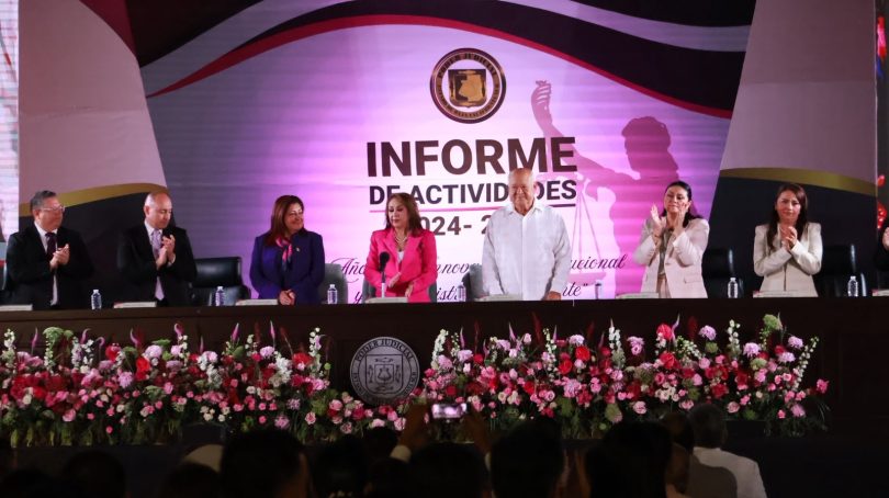 El acto se desarrolló en las instalaciones del Tribunal Superior de Justicia, donde el mandatario destacó que los resultados presentados por la magistrada presidenta reflejan un año de avances y consolidación en el proceso de transformación que vive el sistema judicial en el estado.