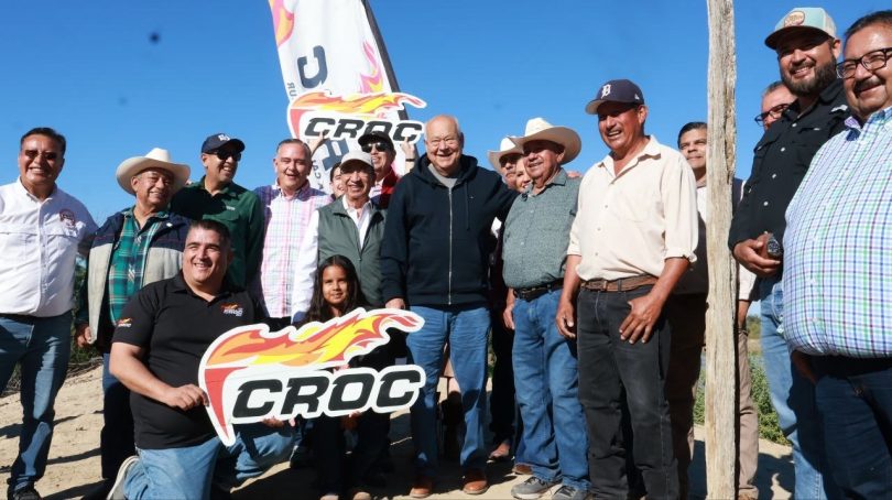 Acompañado por el dirigente nacional de la Confederación Revolucionaria de Obreros y Campesinos (CROC), Isaías González Cuevas, el mandatario destacó que esta obra forma parte de una estrategia integral orientada a aprovechar mejor las lluvias, recuperar los acuíferos y generar condiciones más favorables para las actividades productivas del campo sudcaliforniano.