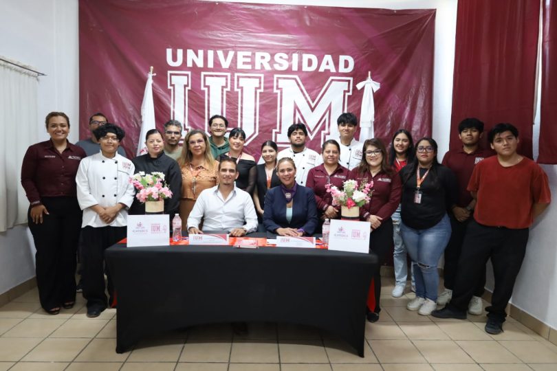 Durante la firma del convenio estuvieron presentes el director del plantel, René Martínez; personal administrativo de ambas instituciones, así como alumnado de la Universidad IUM SAYAM.