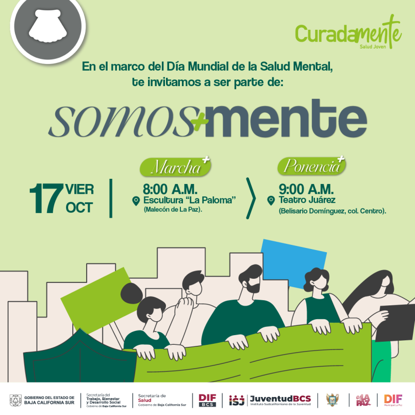 Con el propósito de fomentar el cuidado de la salud mental entre las juventudes de Baja California Sur, el Instituto Sudcaliforniano de la Juventud (ISJUVENTUD), en coordinación con la Dirección de Juventud del Municipio de La Paz, realizará la jornada “Somos + Mentes”, este viernes 17 de octubre, en el marco del Día Mundial de la Salud Mental.