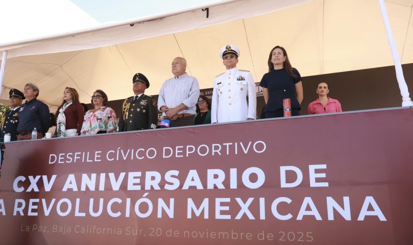 El gobernador de Baja California Sur, Víctor Manuel Castro Cosío, encabezó la ceremonia oficial y el desfile cívico-deportivo por el CXV Aniversario del Inicio de la Revolución Mexicana, acompañado por los titulares de los poderes Legislativo y Judicial, los mandos de las Fuerzas Armadas y Guardia Civil, así como la alcaldesa de La Paz.