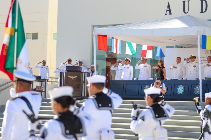 Asimismo, reconoció el papel esencial de la Armada de México, institución que —subrayó— ha defendido con honor y patriotismo la soberanía nacional, al resguardar las aguas del país, el espacio aéreo marítimo y al brindar apoyo permanente en beneficio de las y los mexicanos.